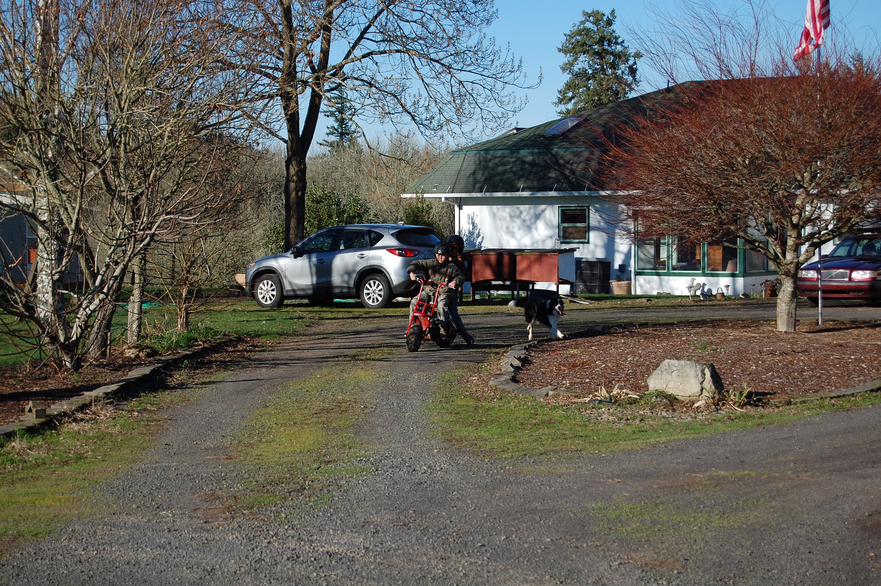 A day or two before their visit a neighbor gave the boys a broken down “scooter”. Michael, who can fix anything, worked with the boys and got it working.