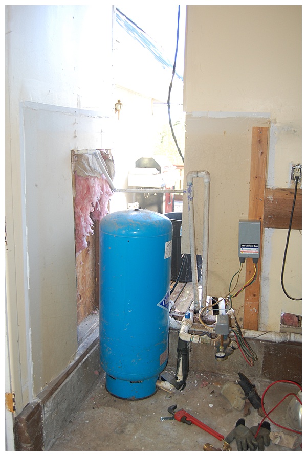 Fast forward 6 months and the brand new pump stopped working. The guys came out, pulled the pump and replaced it under warrantly, but it became clear to us we needed to fast-track the water project. We put it on the short to-do list, and in September we bought a new pressure tank, a 3-stage filtration system, and finalized the supply list. A few weeks of final planning, and a few delays later, we were able to get starting ripping out all of the old junk the 2nd weekend in October .