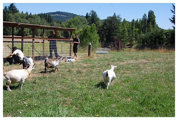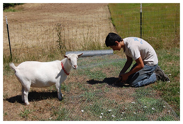 Our goats like to be around us. They were eating, checking out what we were doing and finding shady spots to lie down.