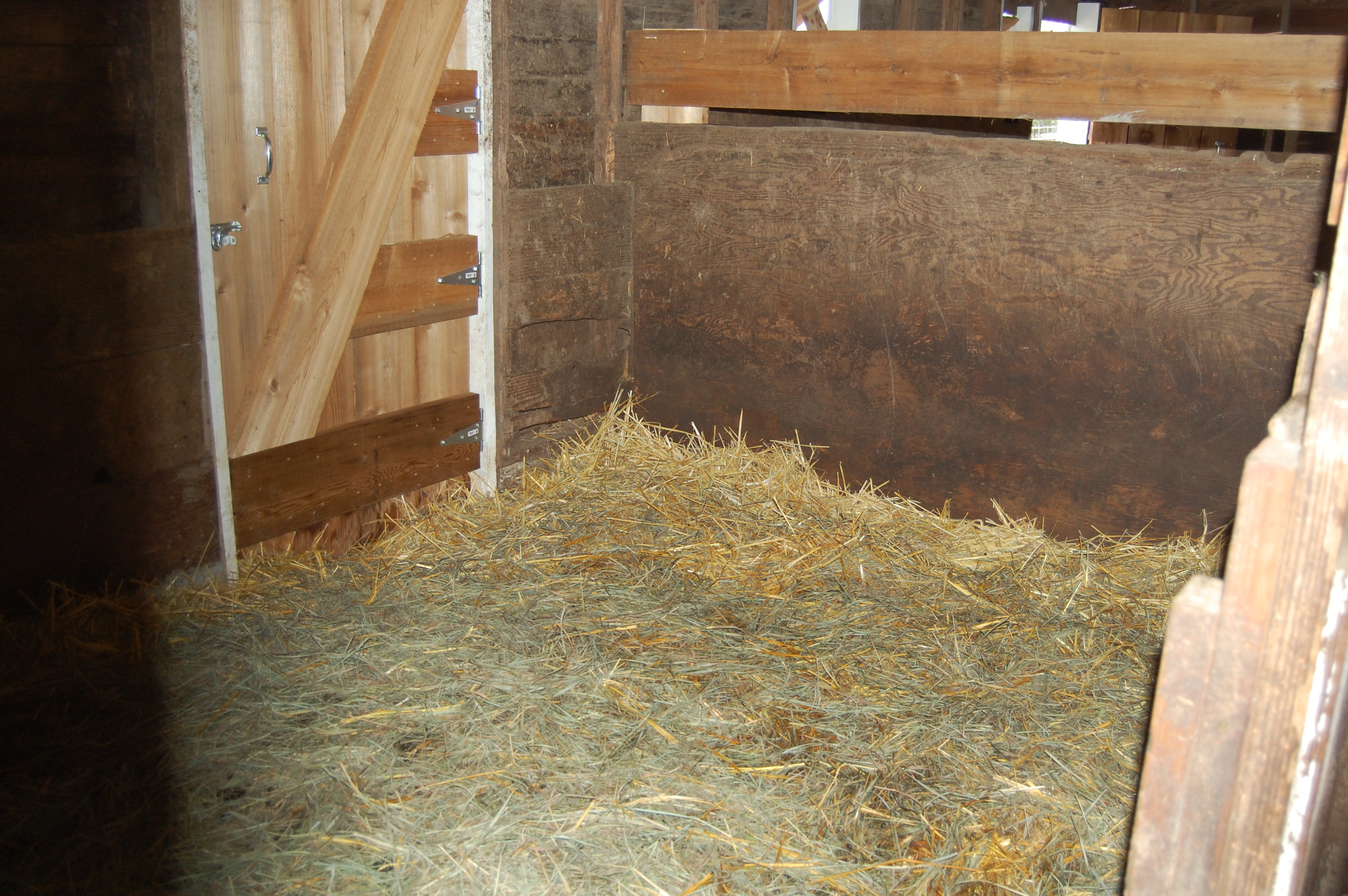 For years the stall had been home to baby pigs. The girl who showed those pigs at 4-H would clean out the stall and all of that waste would be washed out the open door space. It needed amending with something that would help add substance to the ground. The straw was the perfect solution. Plus it was really easy to just pitch the straw out the door