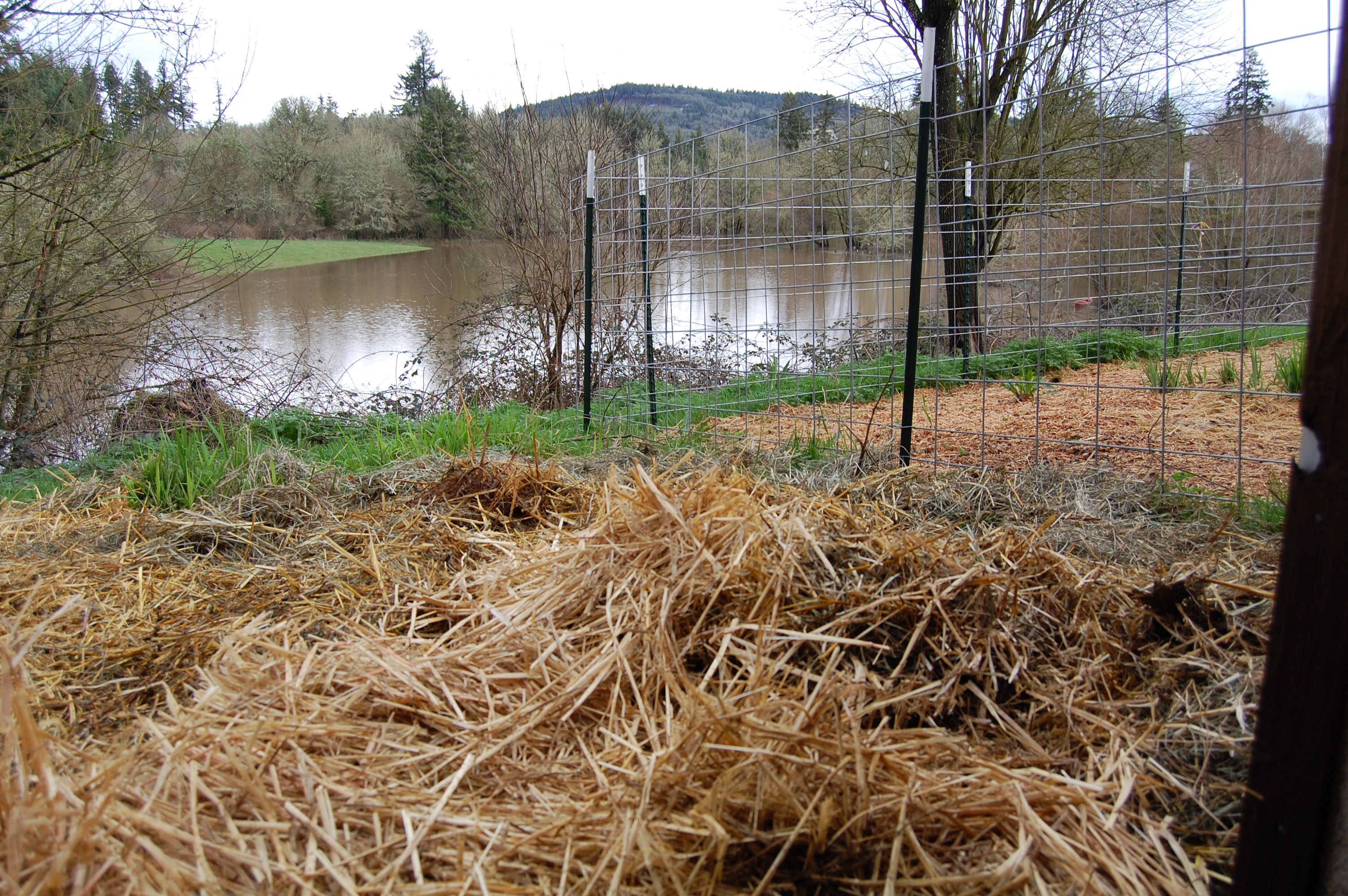 The area outside the door now has a lot of straw that can compost and add structure to the ground.
