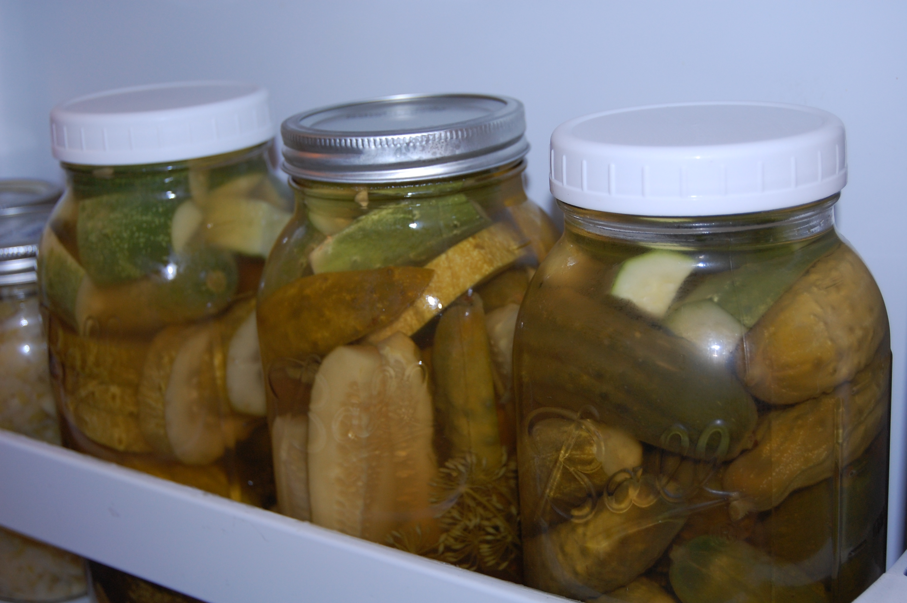 Besides the various ways previously described of making refrigerator pickles I have been adding to our half gallon jars of refrigerator dill pickles. I have five jars all together. I am thankful for this easy yet tasty way to make pickles. I’m also thankful for the refrigerator space.